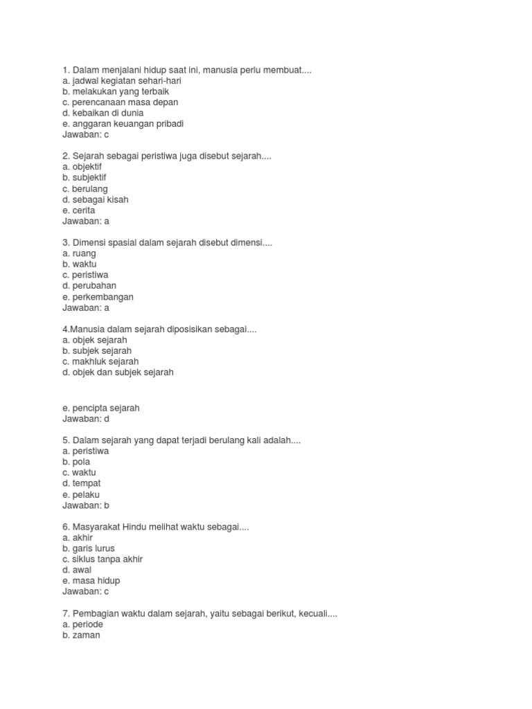 Soal Dan Jawaban Sejarah Kelas 10 Seputar Sejarah